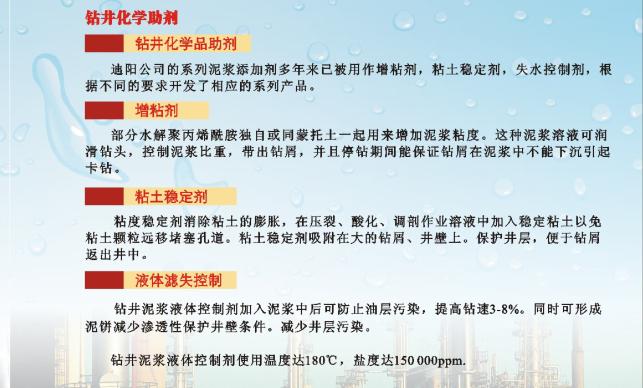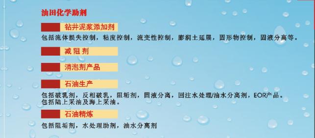 • Oilfield、Drilling chemical additives