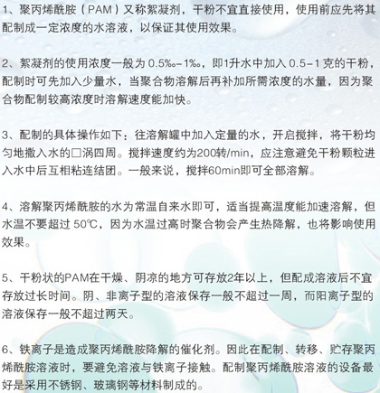 • 粉状聚丙烯酰胺的溶解方法及使用注意事项